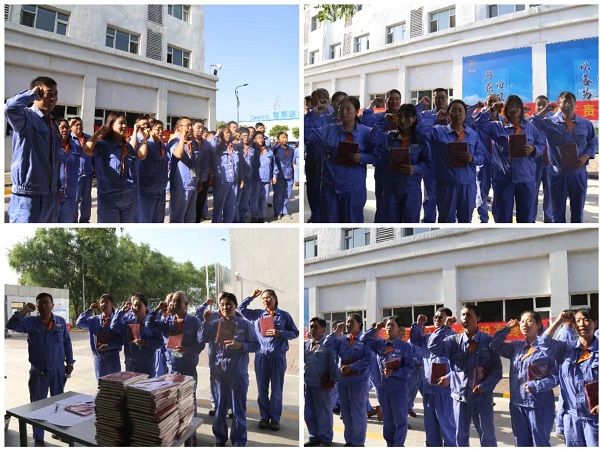 儀式現(xiàn)場發(fā)放了“人人講安全 個個會應(yīng)急”紀(jì)念筆記本,要求大家在日常工作中遵守安全承諾,學(xué)習(xí)安全知識,提升安全技能,在崗一分鐘、安全六十秒,隨后各車間部門紛紛進(jìn)行宣誓承諾。